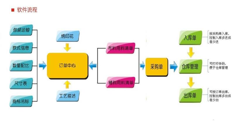鹏力服装进销存管理系统(鹏力服装采购仓库管理系统)主要功能是:鹏力订单管理、采购管理(采购单)、出入库管理(入库单、出库单)、仓库管理等。适用于服装外贸公司、服装工贸公司、服装加工厂等服装公司